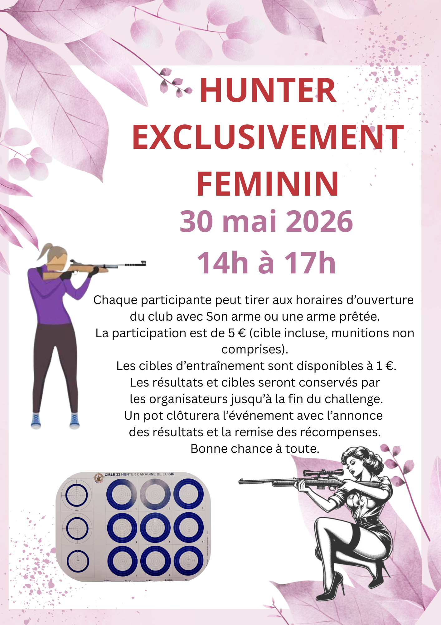 Le SAMEDI 30 Mai 2026. La compétition, sous la forme HUNTER, pratiquée avec carabine calibre 22 Long Rifle, se déroulera à partir de 14h30 et jusqu'à 17h, heure à laquelle nous clôturerons les épreuves autour d'un verre de l'amitié.